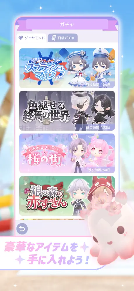 また、髪型や洋服、アクセサリーなど可愛くて魅力的なアイテムがたくさん登場していますので、自由度の高い着せ替えや模様替えが可能です!